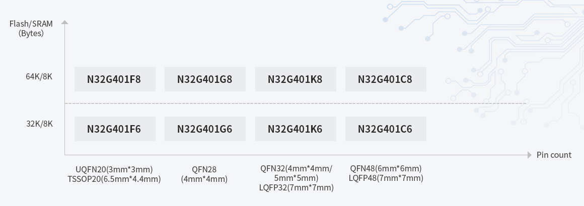 N32G401系列采用32-bit Arm® Cortex®-M4F内核,最高工作主频72MHz,支持浮点运算和DSP 指令,集成高达64KB 嵌入式加密Flash,8KB SRAM,集成丰富的高性能模拟器件,内置1个12bit 4.2Msps ADC,3个高速比较器,集成4个U(S)ART、2个I2C、2个SPI/I2S 等数字通信接口。
