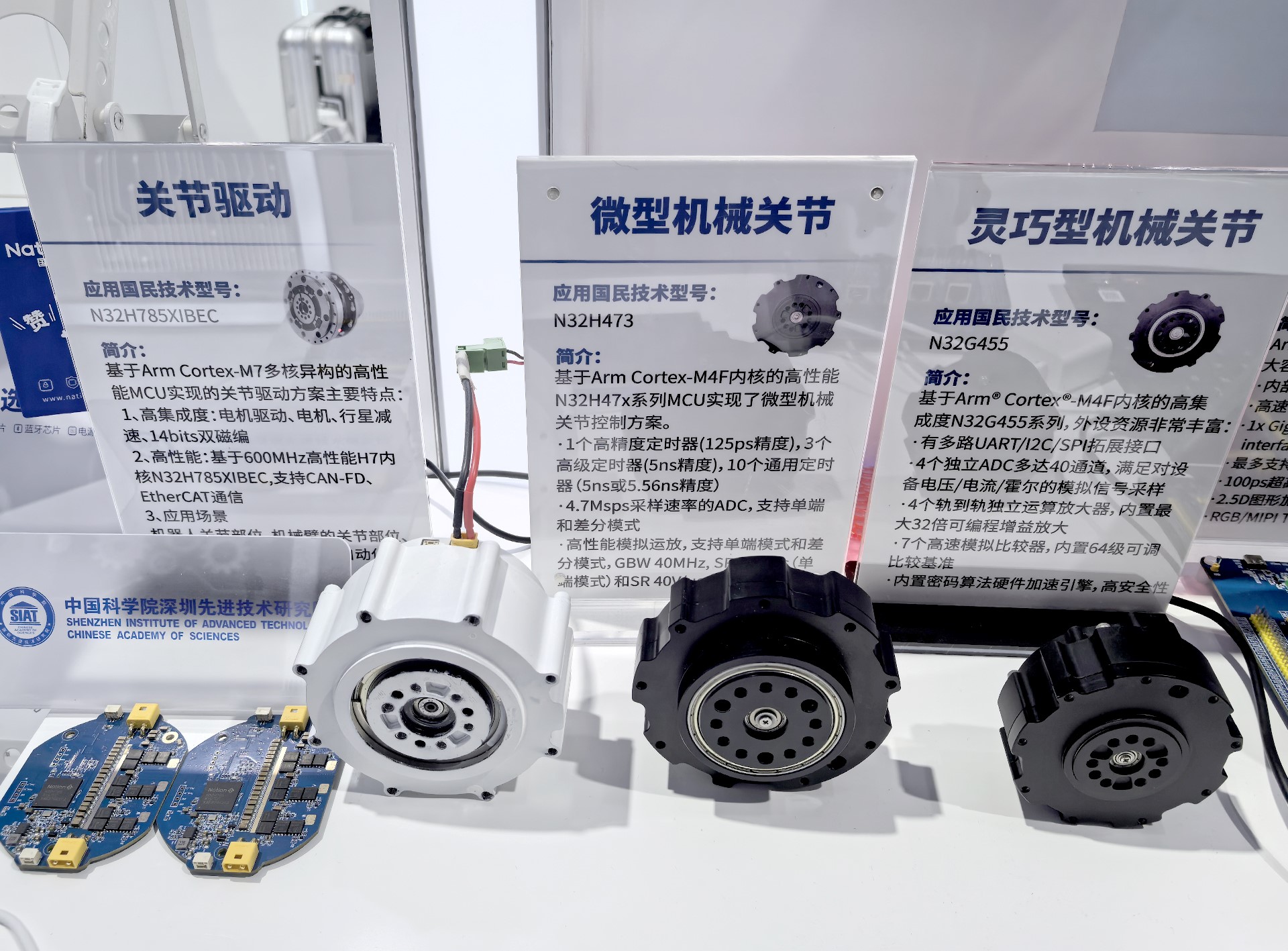 现场展示了多个新产品的开发生态、应用Demo以及与合作伙伴联合打造的应用方案,包括:基于N32H78x系列MCU HMI性能展示,基于N32H785EC系列MCU的EtherCAT多轴联动伺服电机控制Demo展示,N32H785EC系列伺服电机方案、机器人关节驱动方案。